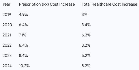 No doubt about it, prescriptions are expensive. While this may not be a big worry when you’re young and healthy, the costs can add up quickly if you’re diagnosed with a chronic condition or need an expensive drug.  Whether you take medications regularly or for an occasional illness, it pays to know how to save money on prescriptions. Did You Know? Drug costs are a primary driver of rising healthcare expenses for both employers and employees. Prescription drug spending is consistently growing at a faster rate than overall healthcare costs, with a steady increase of 6.8%. As the fastest-growing part of benefits plans, these costs will continue to climb with new pharmaceutical innovations. For years in the U.S., cost has been a significant obstacle to sticking with medications with up to 3 in 10 people reporting that they do not take their medications as prescribed. The Rising Cost of Prescriptions Historically, prescription drug costs have outpaced total healthcare costs. The following chart highlights this trend from 2019 to 2024. Prescription drug costs can put a strain on your budget, but with a little research and the right questions, you can reduce expenses without sacrificing your health. Here are expert-backed strategies to help you save on your medications: